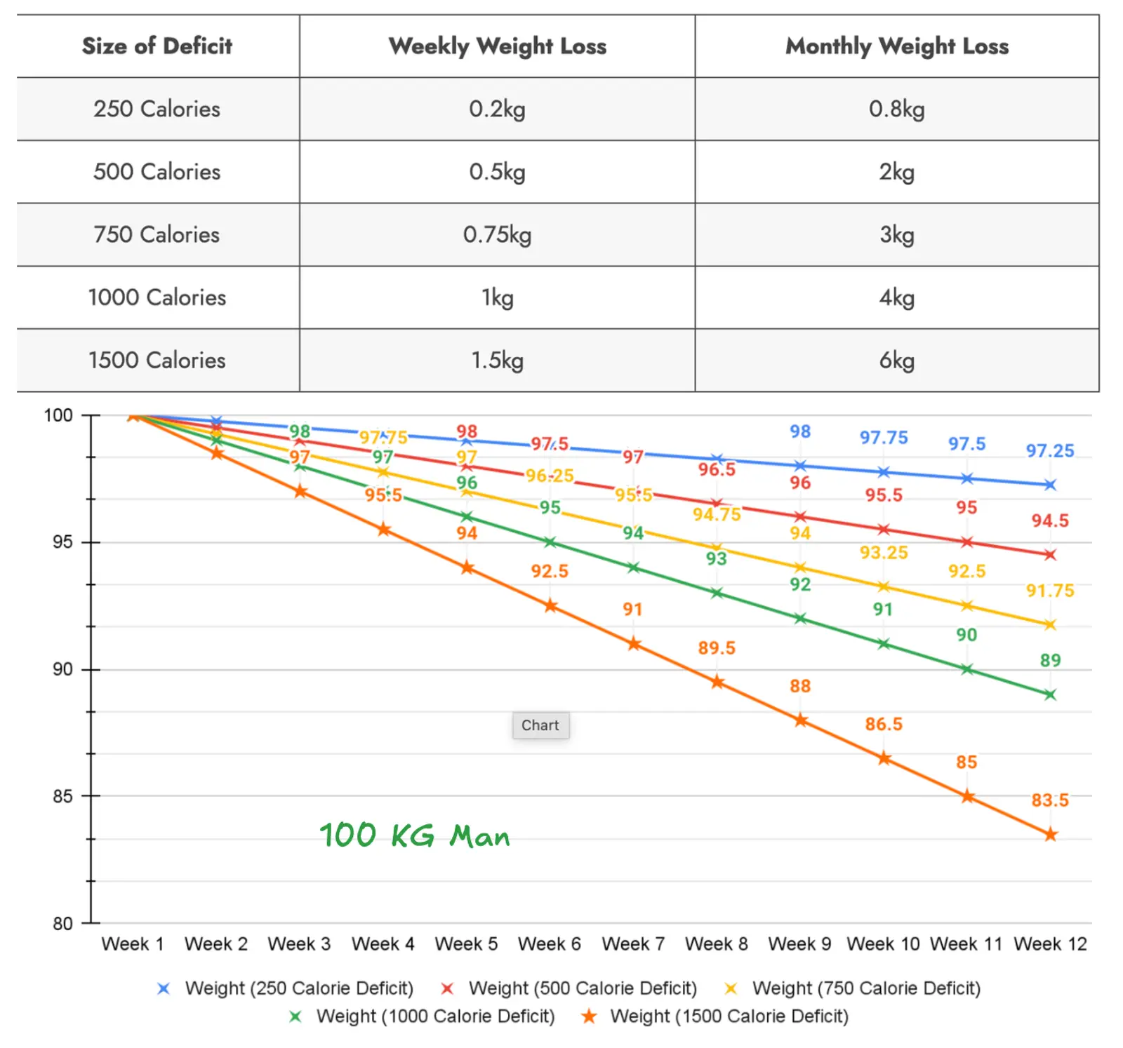 Accurately tracking a 500-1000 kcal deficit makes fat loss a guaranteed, linear equation.