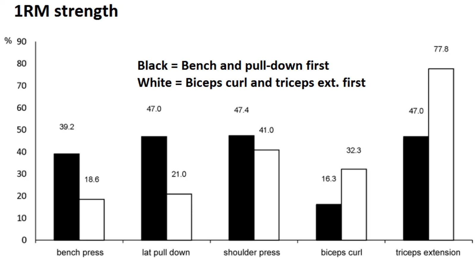 Pre-exhausting small muscles (like triceps) before large compounds (like bench press) significantly reduces the total volume you can achieve on the heavier lift.
