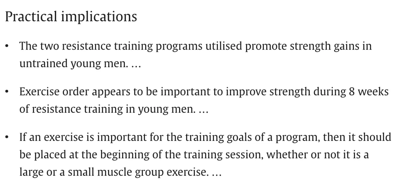 Sacrificial Lifts: whatever exercises you place at the very end of your workout will suffer a reduction in volume and progression.