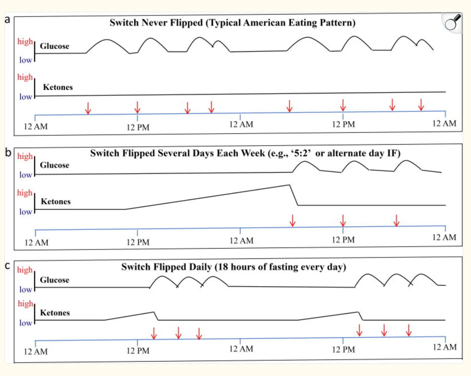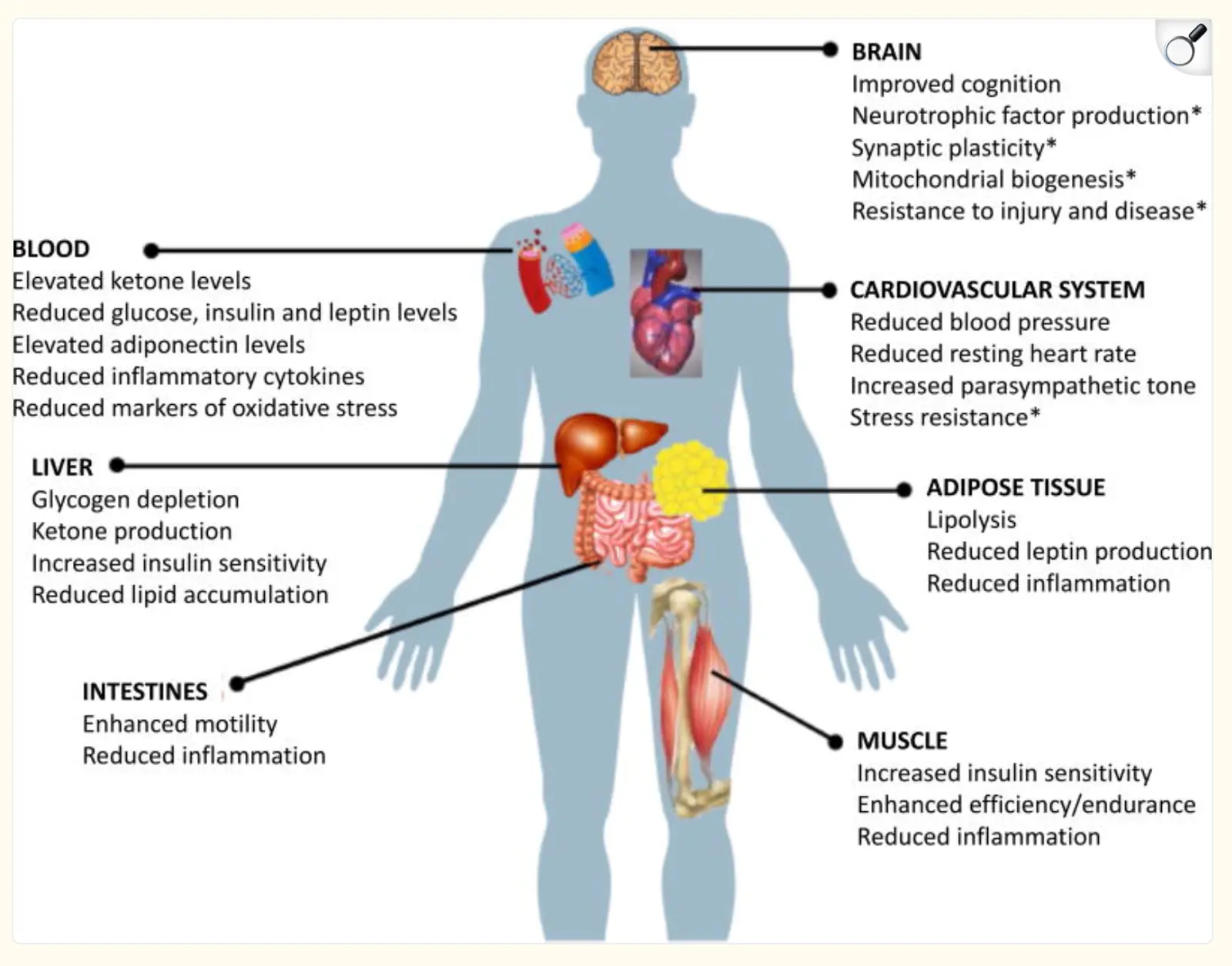 Glucose vs. Ketones: When you stop eating, your liver eventually depletes its glycogen stores and begins ketone production. Flipping this metabolic switch elevates ketone levels in the blood, drastically reducing markers of oxidative stress and inflammatory cytokines.