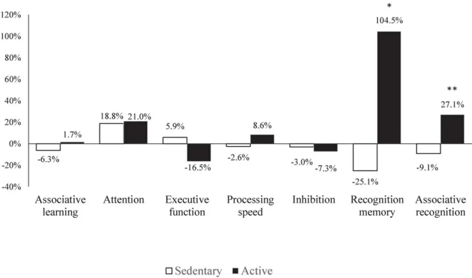 Cognitive Focus & Neuroplasticity: Fasting acts as a hormetic stressor that drives neurotrophic factor production. Clinical data shows that active fasting protocols yield a staggering 104.5% improvement in recognition memory and a 27.1% increase in associative recognition compared to sedentary, fed states.