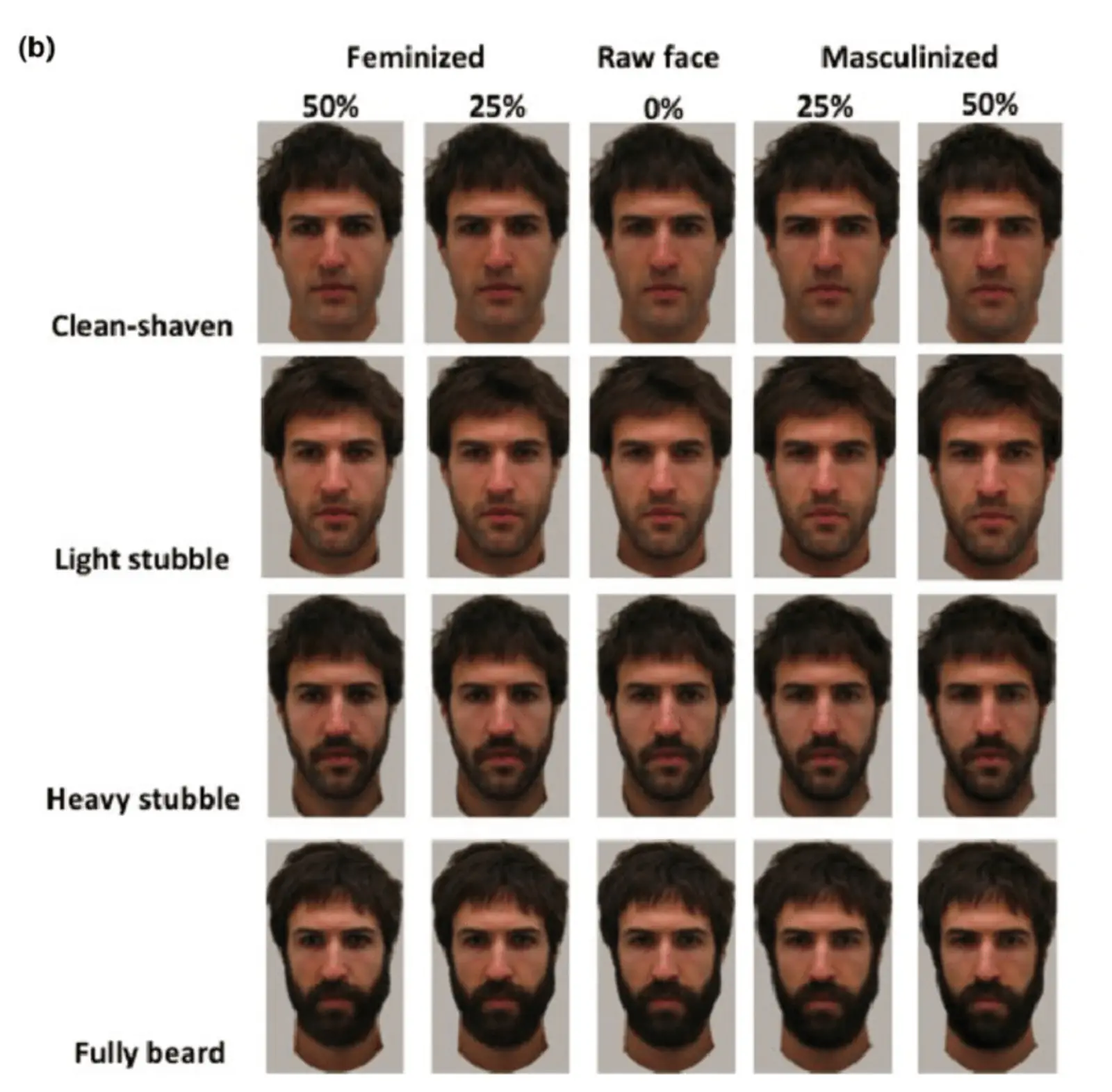 Jawline Enhancement: Stubble creates a contouring shadow effect that increases perceived facial masculinity.