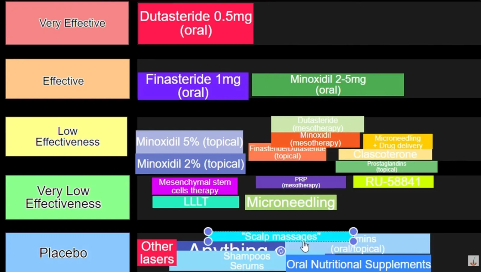 The Placebo Trap: Treatments like Biotin, Caffeine Shampoos, PRP, and "Scalp Massages" are effectively placebos compared to 5-AR inhibitors and offer a terrible ROI.